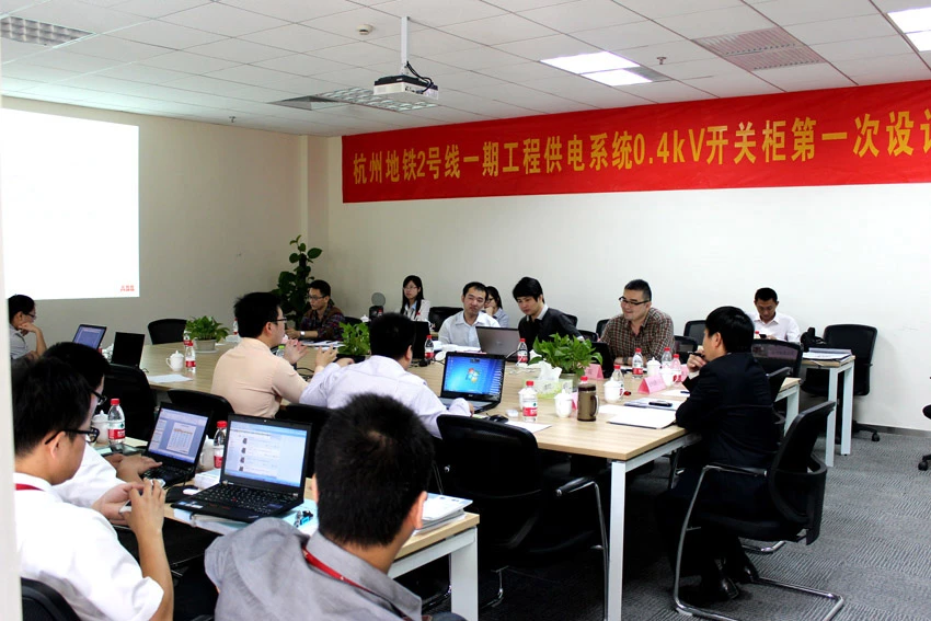 此次会议就杭州地铁2号线一期工程概况以及系统概况,进行了详细阐述,并对本次设计联络会所提供的产品设计图纸及技术资料做了仔细审查和确认,确定了0.4kV开关柜设计方案和基本技术参数。与会各方并对下阶段的工作做了计划和布置。