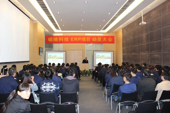 会议的第二阶段由硕维科技各部门主管代表各自部门做了ERP导入宣言,在此邹丹娜执行总裁发言强调ERP系统对公司管理提升、员工个人成长提升的重要性,期待通过ERP系统改进现有的工作方式,提升管理绩效。最后刘洪炉董事长总结了这一年的选型历程并讲解选型U9的原因,并在会上强调三点:一是公司上下要真正从思想上重视ERP系统上线工作,要给予更多的关注,投入更大的热情;二是公司上下要从行动上全力支持、配合系统上线后的各项工作,确保ERP系统使用的顺利推进;三是公司各部门的配合组织工作将纳入年终绩效考核,由人力资源部和信息化部门具体操作。