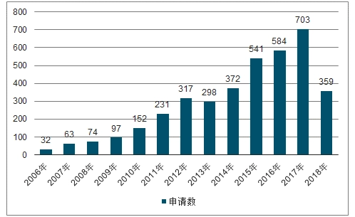 经过多年的发展,我国低压配电柜行业已经从最初的容量小、性能低、功能少、体积大逐渐向性能好、体积 小、智能化的方向发展,逐渐形成较为完善的体系。从低压配电柜的技术专利情况看,截止至目前,其共申请专利 4010项,以实用新型和发明专利为主,其中实用新型专利2654项,占专利申请总量的66.18%,发明专利1025项。从分年度行业专利申请数量看,2016-2018年低压配电柜的专利申请数量总体不断增加。至2018年,受行业 相对成熟及技术稳定等因素的影响,低压配电柜当年仅提供359项专利申请。